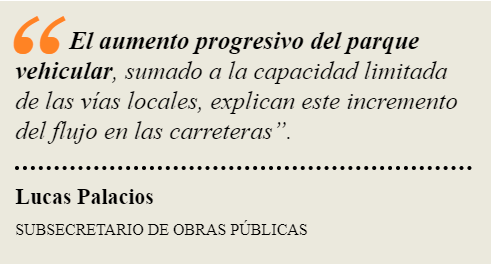 El subsecretario de Obras Públicas, Lucas Palacios, comenta que el aumento del flujo vehicular está relacionado al avance del parque automotor, y también a la falta de capacidad en las vías locales (no concesionadas) que obligan a utilizar las carreteras.