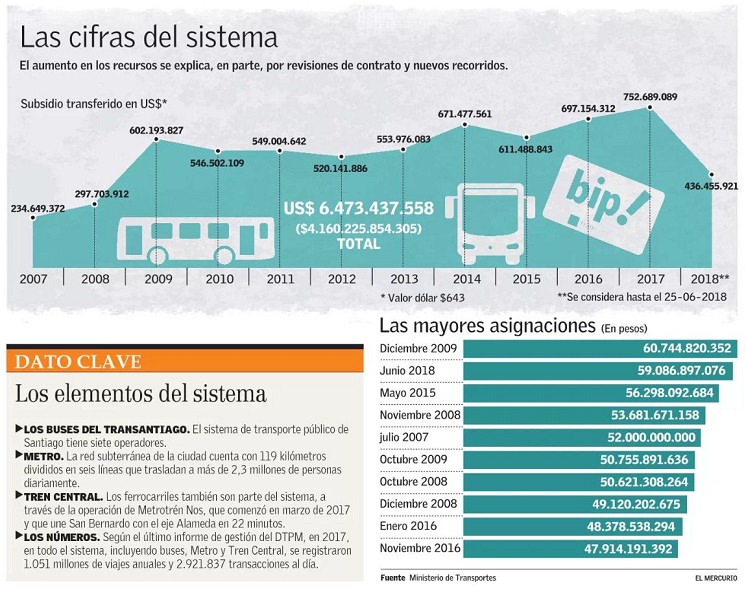 Uno de los problemas del sistema es su situación financiera. Según datos entregados a “El Mercurio” por Ley de Transparencia, desde 2007 y el 25 de junio de este año, el Estado ha aportado US$ 6.473 millones para que siga operando, es decir, cuatro billones de pesos.