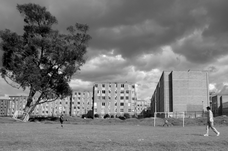 […] hacia el lado derecho es Parques de Bogotá y a la izquierda Bosa San Bernardino y lo que hay en medio es como un vacío, como la huella que deja la nueva forma de hacer gueto y la forma antigua de hacer frente al desarrollo comunitario. Y la misma imagen lo evidencia: un desinterés total con lo que ya está preexistente con lo que ya hay como comunidad y lo que ya hay con lo antiguo [21].