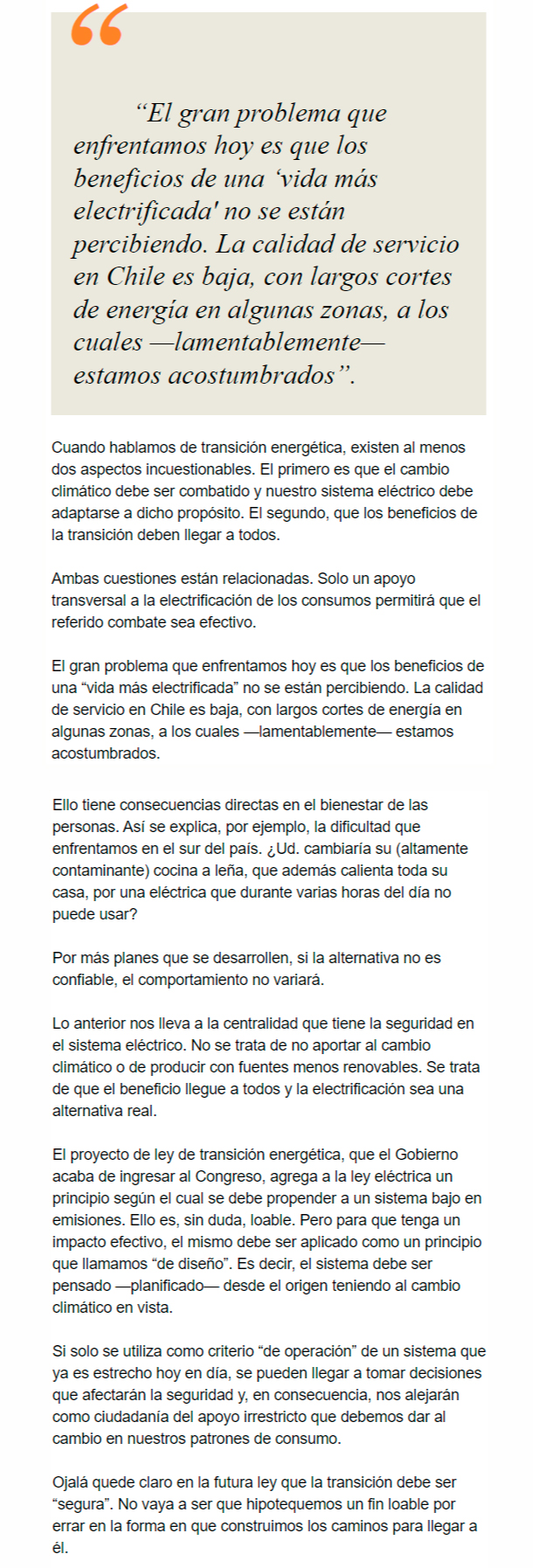 EL MERCURIO – El gran problema que enfrentamos es que los beneficios de una “vida más electrificada” no se están percibiendo.