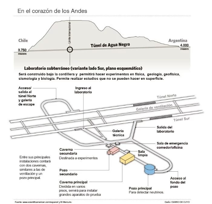 DIARIO DE CUYO – Lo que hasta el momento era incertidumbre, ahora se transformó en interés. Tras la presión que ejerció San Juan, Chile dio un paso clave en el proyecto científico ANDES, que comprende la construcción del laboratorio que detectará rayos cósmicos en el medio de la cordillera y que estará junto al túnel de Agua Negra. Según confirmaron en el Ejecutivo local, el país trasandino designó a un encargado para avanzar con la oficialización del mismo, por lo que en Argentina dan por descontado que la obra se va a hacer. Ahora sólo resta que el Ministerio de Hacienda del vecino país dé el OK necesario y disponga los fondos suficientes para encarar el anteproyecto de la obra. Según las estimaciones, se trata de unos 350 mil euros, casi 8 millones de pesos al cambio actual.