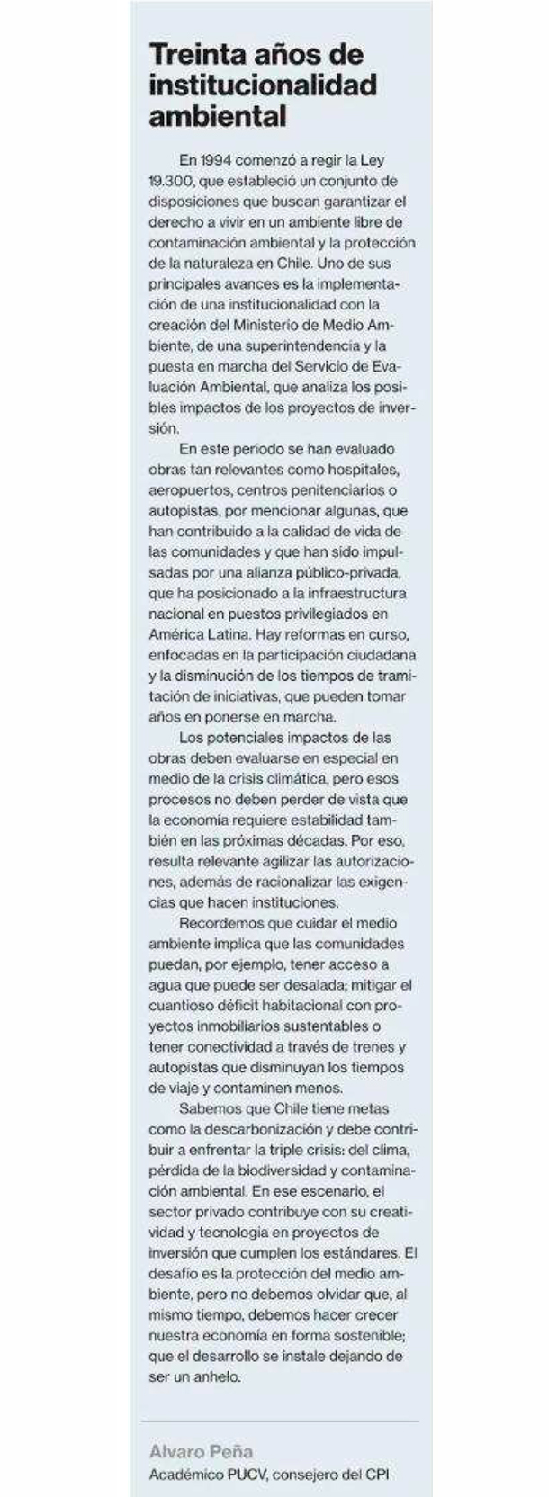 LA SEGUNDA – El desafío es el medio ambiente, pero no debemos olvidar que, al mismo tiempo, debemos hacer crecer nuestra economía en forma sostenible; que el desarrollo se instale dejando de ser un anhelo