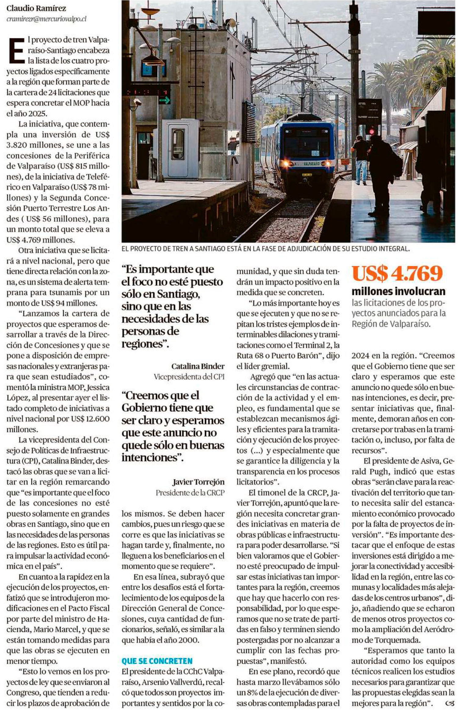EL MERCURIO DE VALPARAÍSO – El MOP presentó ayer la cartera de iniciativas que incluye cuatro en la zona por un monto total de US$ 4.769 millones