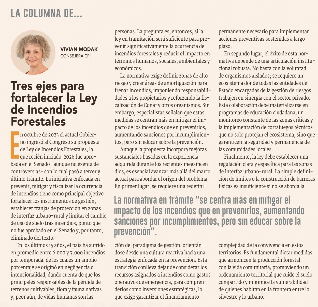 DIARIO FINANCIERO – La normativa en trámite “se centra más en mitigar el impacto de los incendios que en prevenirlos, aumentando sanciones por incumplimientos, pero sin educar sobre la prevención.