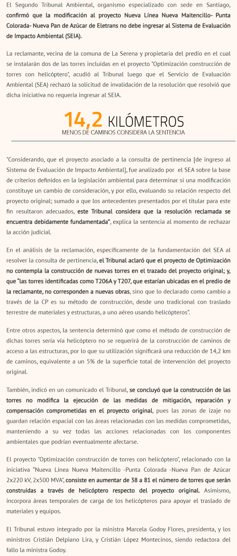 DIARIO FINANCIERO – El proyecto de optimización no contempla la construcción de nuevas torres en el trazado del proyecto inicial