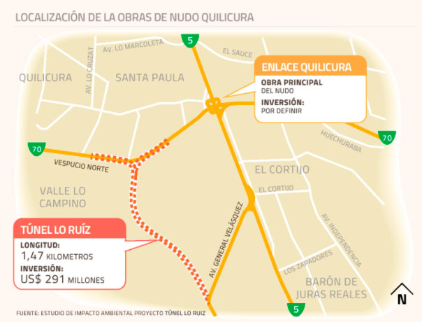El Túnel Lo Ruiz es la primera parte del Nudo Quilicura y busca captar el 25% del flujo de la zona, para que posteriormente se puedan hacer las obras del enlace. Esta etapa entró a tramitación en julio de 2018.