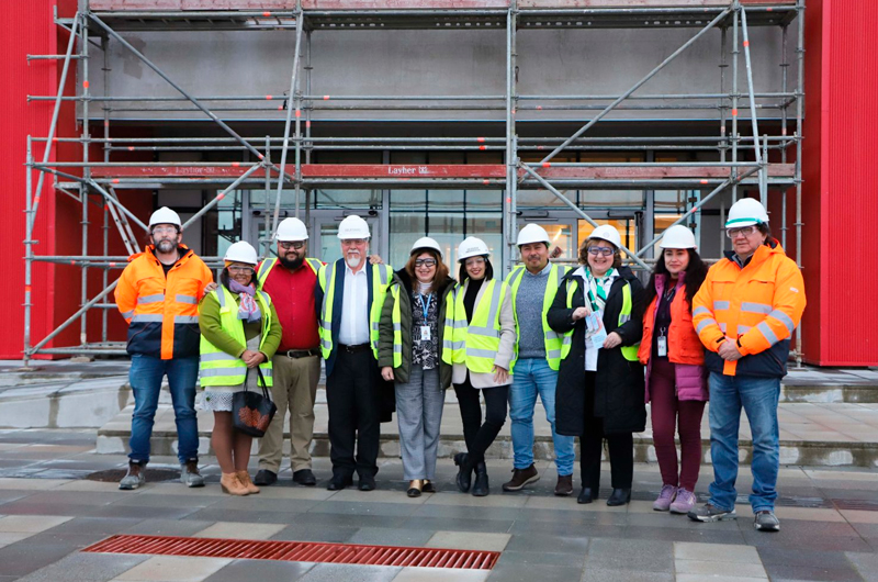 Durante el recorrido, la Delegada presidencial de Los Lagos, Giovanna Moreira; el Delegado presidencial provincial de Chiloé, Armando Barría Oyarzún; la SEREMI de Salud de Los Lagos, Karin Solís, la directora del Servicio de Salud de Chiloé, Marcela Cárcamo; el Consejero Regional, Andrés Ojeda y los concejales Ruth Caicheo y Andrés Ibáñez, constataron el progreso de la edificación, que alcanza un 93% de avance físico.