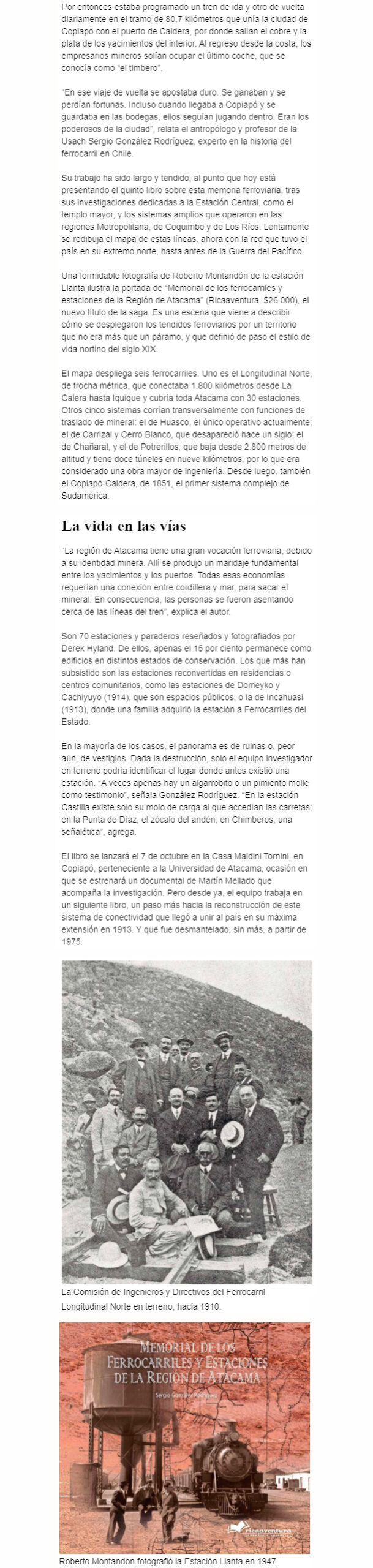 EL MERCURIO – Desde el mítico tramo Copiapó-Caldera, las vías comenzaron a desplegarse por el territorio.