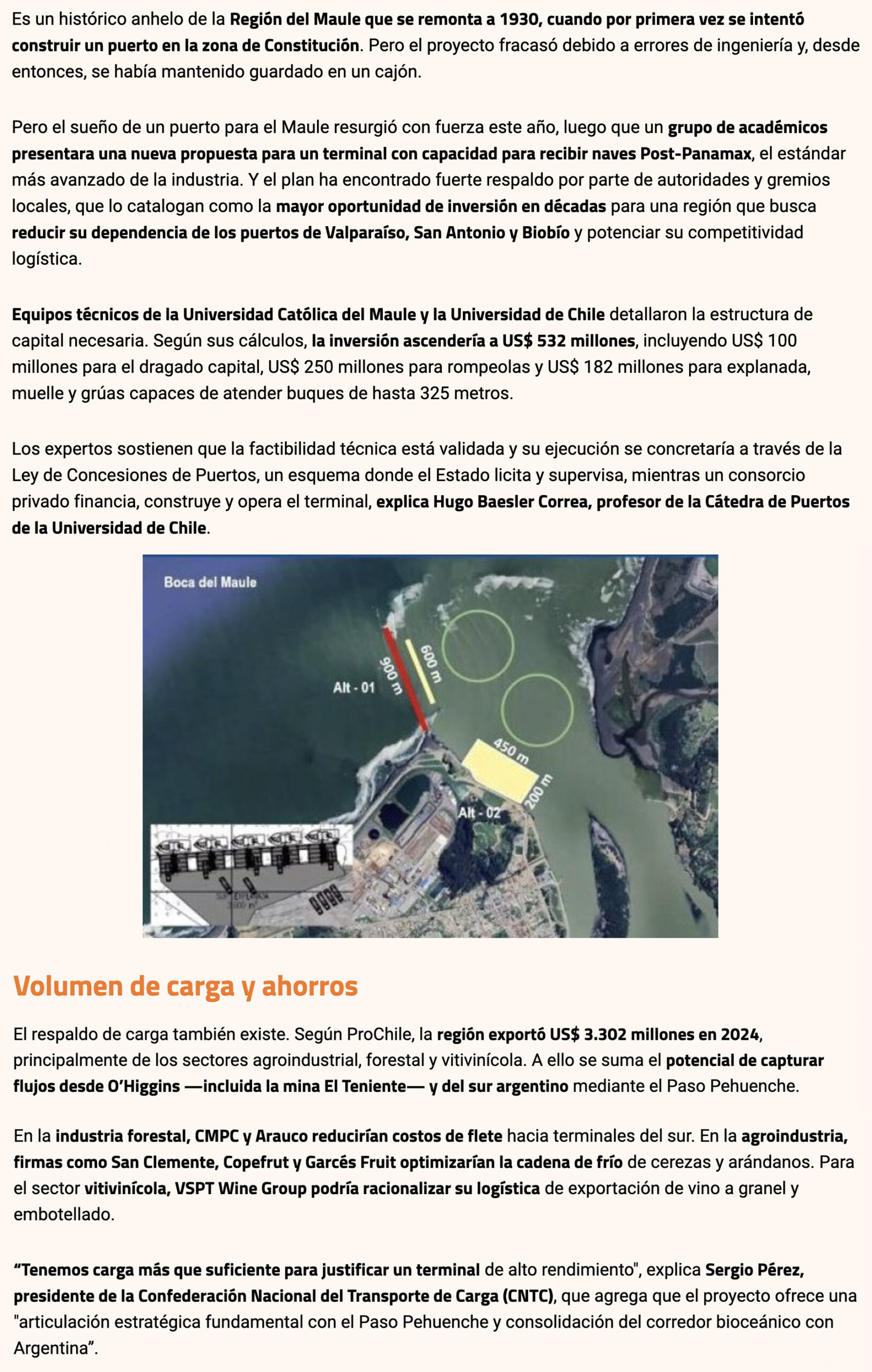 Un puerto para el Maule: histórico anhelo regional revive con un nuevo proyecto por US$ 532 millones en Constitución