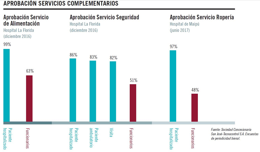 Evitar los focos de conflicto es también un objetivo de las autoridades. Por este motivo, y a pesar de las evaluaciones positivas –“espectacularmente buenas”, dice Barrios– que los pacientes han otorgado a los servicios de hotelería en los hospitales concesionados de Maipú y La Florida, se decidió excluirlos en los contratos de APP. La razón, explica, es la oposición que presentaron los gremios, dado que “nuestro cliente, además del paciente, son nuestros funcionarios”. Confía que esta decisión significará “un enorme dolor de cabeza menos” para los concesionarios.