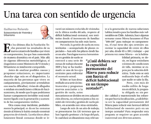 LA SEGUNDA – “¿Cuál debiera ser la capacidad permanente del Minvu para reducir con fuerza el déficit habitacional en un tiempo acotado?”.