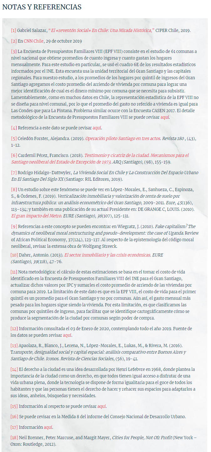 Chile tiene hoy la oportunidad histórica, gracias al estallido social y la consiguiente necesidad de reorganizar las ciudades de cara a una nación que se está repensando. Dado que las estrategias urbanísticas de desplazar y desregular el desarrollo urbano son indicadas como las principales causas de la segmentación de la ciudad para su explotación, un nuevo pacto social debe considerar también que las cosas en materia urbana no se han hecho bien y se necesita enmendar.