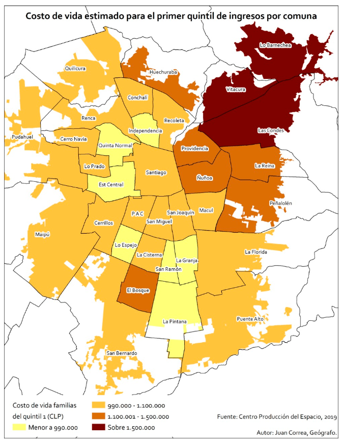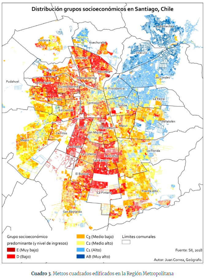 Figura 4. Mapa del Gran Santiago según nivel socioeconómico. Fuente: Juan Correa