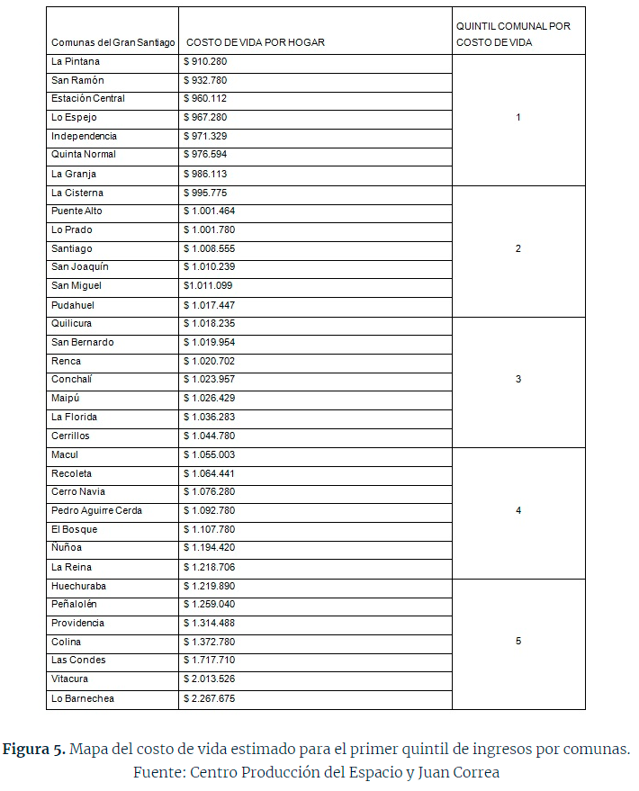 Los valores del acceso a la vivienda terminan por segmentar a la población de acuerdo con la economía de sus hogares, definiendo quién puede vivir en qué comuna de acuerdo a su poder de compra (Figura 5).