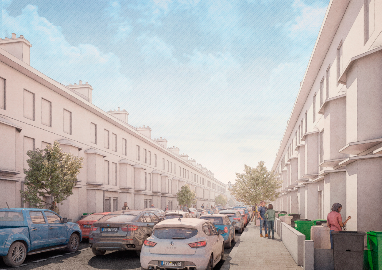 Por ejemplo, la base de datos de designación de paisaje urbano de libre acceso creado por Nicolas Palominos, investigador médico de la Facultad de Arquitectura UCL Bartlett, nos permitió acercarnos a una típica calle residencial de Londres e identificar posibles formas de recuperar espacios subutilizados de automóviles estacionados. Hoy, la calle residencial promedio proporciona dos tercios de su ancho para vehículos y solo un tercio para peatones. Dos pavimentos estrechos están llenos de automóviles, y lo que se supone que son jardines frontales a menudo son inutilizables, gran parte de este espacio está ocupado por cubos de basura. Nuestra visión ve la calle transformada en un espacio para la comunidad, una arena pública en lugar de una ruta directa. La consolidación del estacionamiento crea una oportunidad para priorizar caminar y andar en bicicleta, el territorio recuperado se puede usar para crear áreas con más vegetación, asientos y un vertedero centralizado de desechos que ayudará a liberar los jardines frontales. Por supuesto, no hay dos calles iguales y cada una merece una respuesta de diseño a medida. Pero las políticas, los conjuntos de datos y las herramientas de diseño están listos para asumir el desafío.