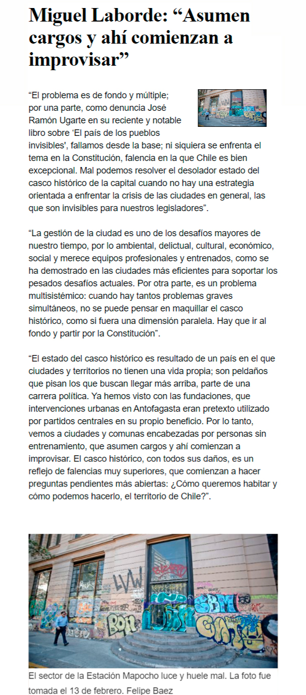 EL MERCURIO – Apuntan a que hoy el panorama es “desolador” y que no basta con pintar fachadas sin una estrategia de gestión de ciudad.