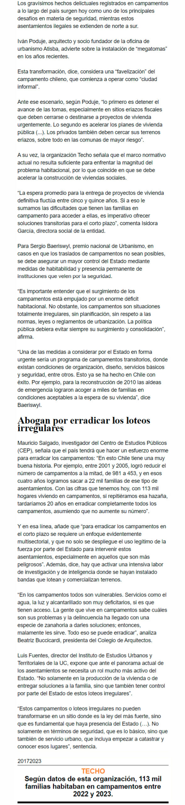 EL MERCURIO – Arquitectos e investigadores coinciden en que se debe tomar el control de aquellos donde campea la delincuencia, junto con acelerar las soluciones habitacionales