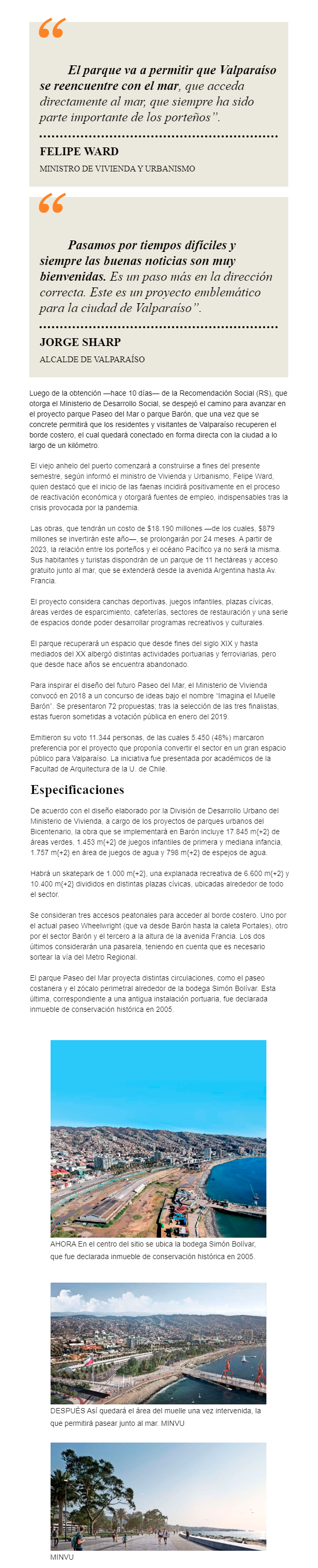 EL MERCURIO – En 11 hectáreas, los posteños y los visitantes dispondrán de un gran espacio público que ahora está abandonado. El proyecto tendrá una inversión de $18.190 millones.