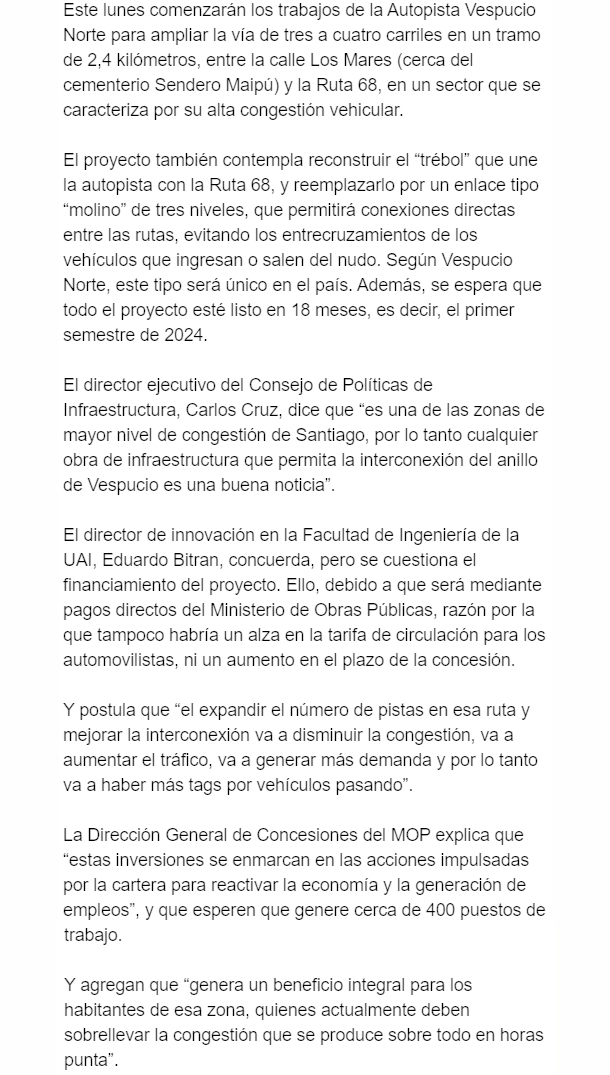 EL MERCURIO – También ampliarán de tres a cuatro carriles las pistas del sector, obras deberían concluir en 2024.