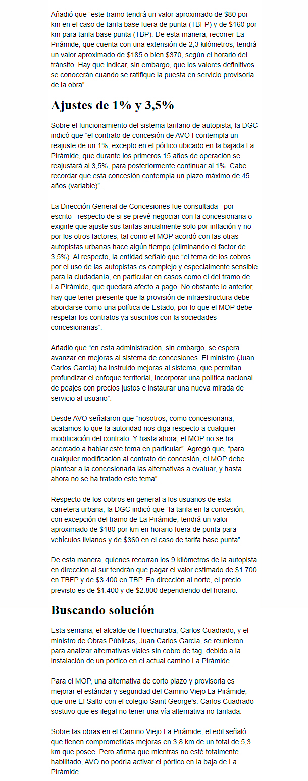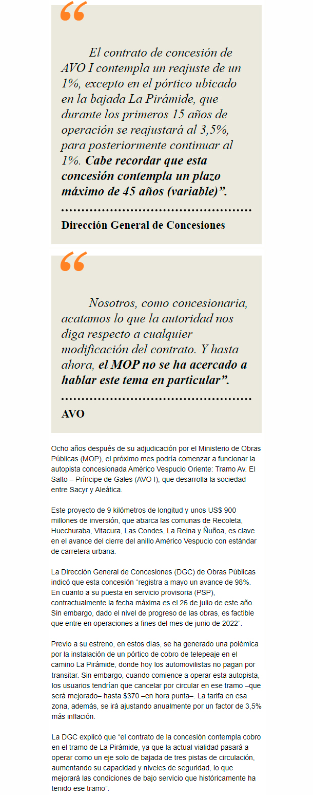 EL MERCURIO – MOP afirma que “debe respetar los contratos ya suscritos” y AVO asegura que no han tratado modificaciones con el ministerio. La cartera y el municipio han analizado una opción vial sin cobro.