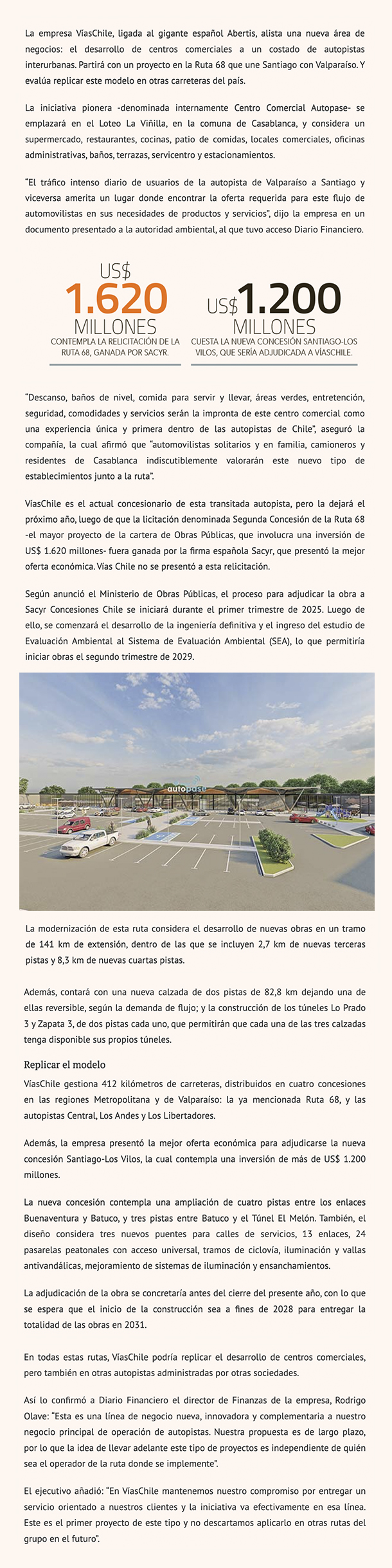 DIARIO FINANCIERO – “Esta es una línea de negocio nueva (…) la idea de llevar adelante este tipo de proyectos es independiente de quien será el operador de la ruta donde se implemente”, anunció la compañía.