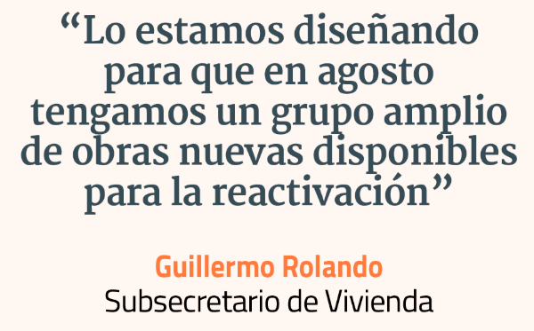 Rolando explica que un programa habitacional requiere diseño y aprobaciones “en estos tres meses hemos estado en eso, ya tenemos hoy un abanico importante de obras y proyectos que estarían disponibles, lo estamos diseñando para que en agosto tengamos un grupo amplio de obras nuevas disponibles para la reactivación”.