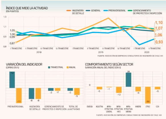 “El aumento en las restricciones de movilidad ocasionadas por las medidas sanitarias para combatir la pandemia del coronavirus, han impactado negativamente a la industria de la ingeniería, lo que se ha visto reflejado en la postergación de proyectos, retraso en licitaciones, así como, en mayores restricciones para la actividad en terreno”, revela el informe.