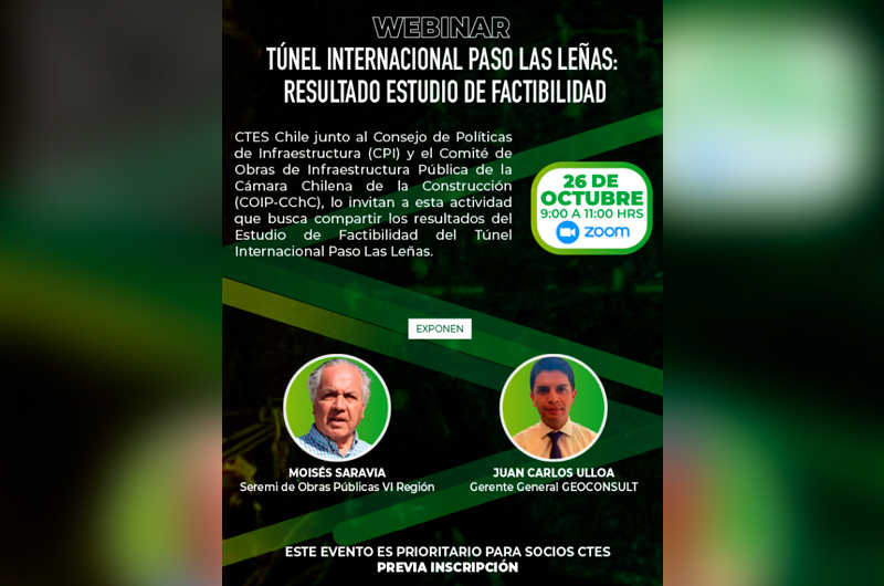 CTES – CDT – CPI – Invitación a esta actividad que busca compartir los resultados del Estudio de Factibilidad del Túnel Internacional Paso Las Leñas.