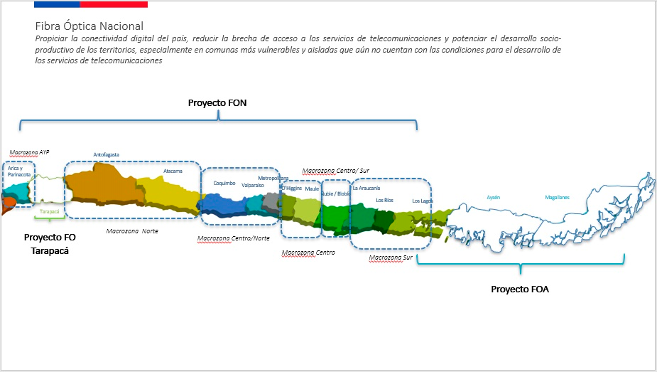 Las regiones que no están contempladas en este proyecto se debe a que ya se está realizando algún tipo de despliegue de fibra óptica, como es el caso del extremo sur, donde se encuentra en la etapa final el proyecto de Fibra Óptica Austral (FOA).