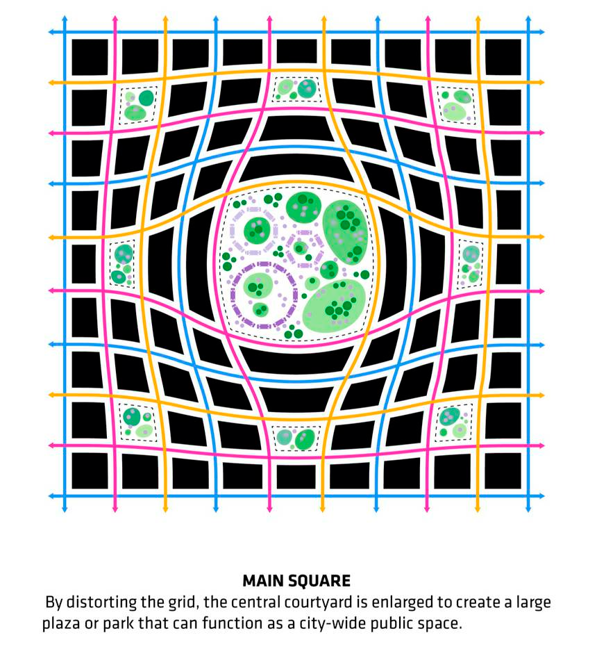 Otra de las características de estos bloques de 3 x 3 es que tendrán calles exclusivas para diferentes tipos de vehículos: las calles exteriores serán siempre para automóviles y transporte público, y las del centro se dividirán en calles exclusivamente para peatones y otras para dispositivos de transporte individual, como scooters, bicicletas y otros. De esa forma, se asegura que independiente de cómo te muevas, llegarás de prisa a cualquier lado. La gracia, además, es que cada bloque tendrá una distribución diferente, por lo que se realizará un entramado de calles y formas de transporte que además de limpio, respetará a cada tipo de usuario en rutas pensadas para cada uso: las rutas de autos serán más amplias mientras que las de peatones más angostas, pero rodeadas de verde y poco ruido.
